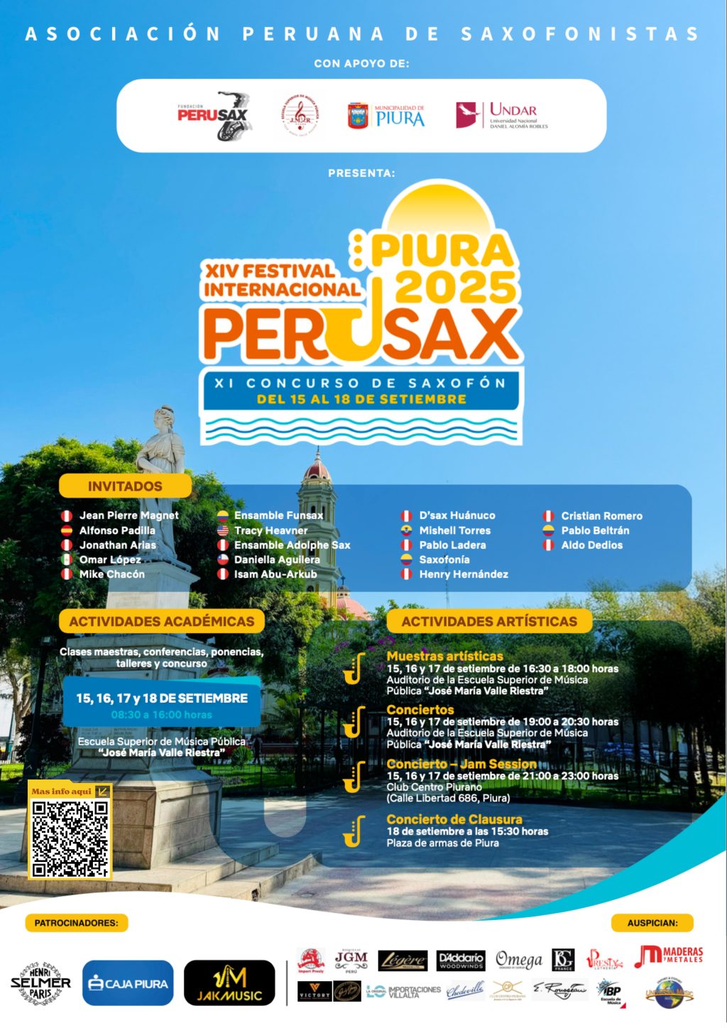 La Fundación PERUSAX y la Asociación Peruana de Saxofonistas como todos los años, realiza cada edición en una ciudad diferente del Perú, una de las fiestas mas importantes del saxofón para el Perú y Latinoamérica. Es así que para este año, esta fiesta saxofonística se realiza en la ciudad de Piura del 15 al 8 de septiembre. Contando con la presencia de importantes saxofonistas nacionales e internacionales.